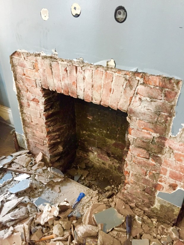 We opened up the dining room fireplace for starters. Yay! More rubble!
